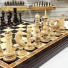 Изысканные шахматы ручной работы – воплощение мастерства и элегантности. Шахматная доска, созданная вручную из массива размером 50х50 см, искусно инкрустирована шпоном ценных пород дерева венге и ясеня в технике маркетри, что придает ей неповторимый шарм. Складная конструкция доски скрывает внутреннее пространство, отделанное мягким бархатом, обеспечивающим бережное хранение фигур и добавляющим роскоши.